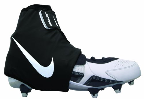 Nike STR8 Jacket Black/White Football Ankle Brace Lighter, more supportive and reusable. An innovative football cleat spat system, the Nike STR8 Jacket football ankle brace provides a customized compression fit for lockdown and reduced slippage from quick cuts and jumps. 5 step velcro system with neoprene inside jacket. Stretch neoprene fabric for custom, glove-like fit. Multi-point adjustability for comfort. Fits over cleats. Nike Swoosh logo on the outer shell. Sold in pairs. Sizes: M - 2XL. Color: Black/White.